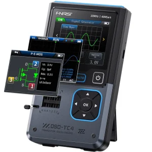 Specifications ✦ Upgraded Version: FNIRSI DSO-510 handheld oscilloscope is upgraded from FNIRSI DSO152 oscilloscope, 10 MHz high bandwidth, 48 MS/s high sampling rate, 50 ns-20 S time base range. Voltages up to 400 V can be measured. ✦ Accurate measurement: The digital portable oscilloscope supports the level of display and the infinite afterglow, which can accurately capture the signal features. It supports waveform scaling, suspension, movement and image saving and exporting functions. ✦ DDS signal generator: FNIRSI DSO-510 can output 13 kinds of waveforms, and the maximum waveform output frequency is up to 50 KHz, which can meet the needs of diversified signal simulation and improve the efficiency of testing and analysis. ✦ Professional Designed: Suitable for periodic analog signals and non-periodic digital signals. 2.8-inch HD LCD display, 320*240 resolution, which is clear and easy to observe. The one-key AUTO function can automatically optimize the measurement parameters. ✦ Long-lasting battery life: The automotive oscilloscope has a built-in 1000mAh high-quality lithium battery and supports Type-C interface charging to ensure worry-free long-term use.FNIRSI DSO-TC4