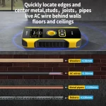 - Multifunctional Detection: This wall detector scanner can help you to quick locate edges and center metal, studs, joists, pipes and live AC wire behind walls, floors and ceiling. The measuring ranges of wooden is ≤38mm, AC wires ≤50mm, metal pipes ≤100mm and rebars ≤120mm.