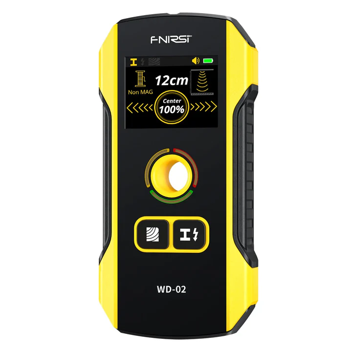 FNIRSI WD-02 Wall Detector is an upgraded version of WD-01, WD-02 has upgraded high-definition TFT display screen and new UI interface. Also added 6 languages: Russian, English, Portuguese, Japanese, Simplified Chinese, and Traditional Chinese. Its 3-level sensitivity adjustment makes the measurement accuracy higher. It can be used to detect steel bars, metal joists, metal pipes, wood, wires in walls, ceilings and floors. 3 detection modes are designed, metal detection mode, wood detection mode and AC detection mode to meet your different working needs. The brand-new positioning hole design is no longer afraid of drilling wires and steel bars. Widely used in interior decoration, home installation and other industries, so that various constructions can be carried out safely.